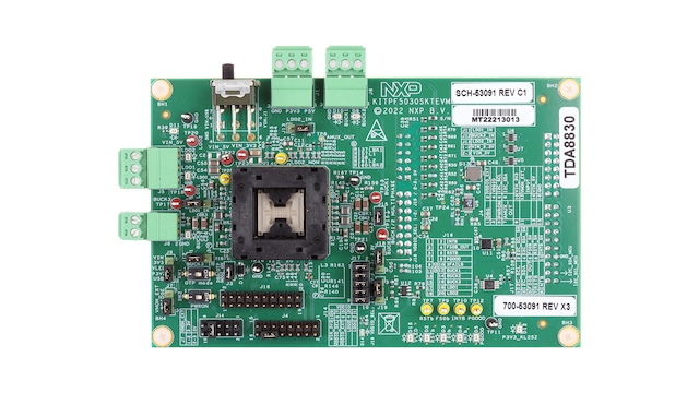 - FRDM-KL25Zに接続された、組み立ておよびテスト済みのKITPF5030SKTEVM(帯電防止袋入り)