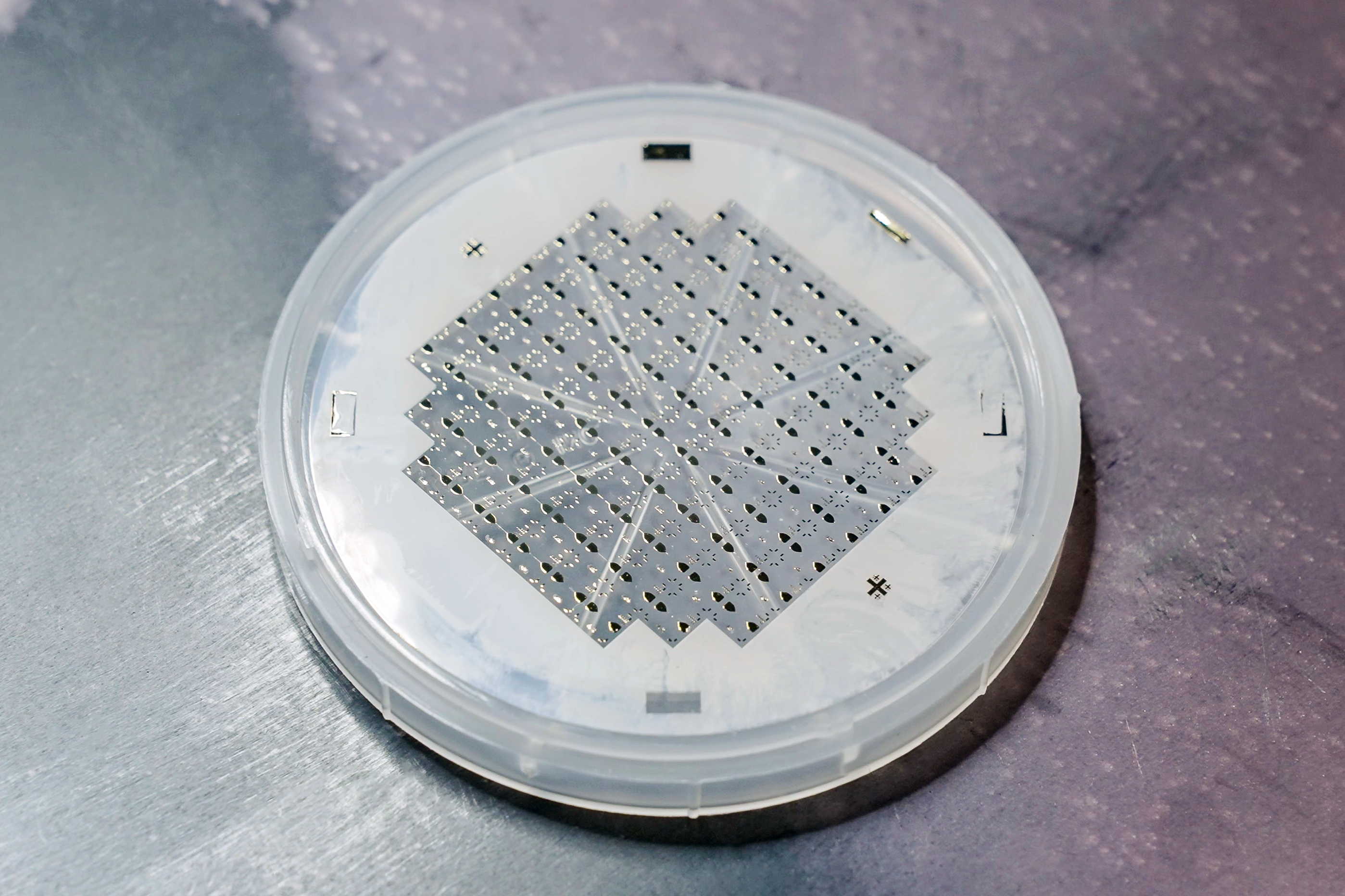 イオン・トラップ技術で微細加工した量子プロセッサを載せた3インチのウェハ提供:QUDORA Technologies GmbH