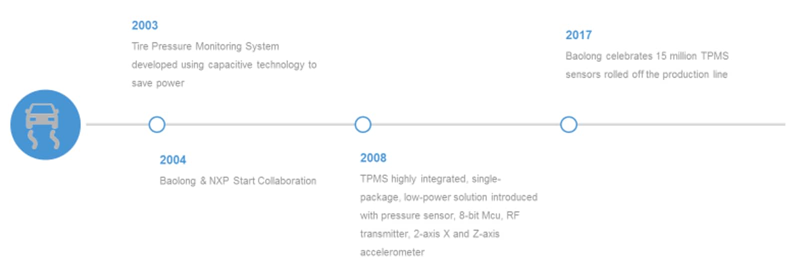 The close collaboration began in 2004 with the purpose of developing reliable, high-quality and high-performance TPMS solutions. These solutions have been widely adopted by car manufacturers in China, North America and in Europe – where all cars are equipped with a tire pressure monitoring system. Baolong is now recognized as a global industry leader because of its creative designs.