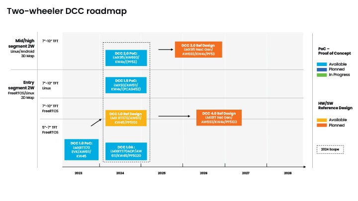 1サプライヤを対象に、すぐに実装可能なDCCプラットフォーム、概念実証設計、包括的な半導体およびソフトウェアのポートフォリオを提供しており、二輪車デジタル・クラスタ市場をリードしています。今年の初めには、i.MX