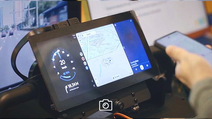 - 交通標識および路上障害物検知:カメラがリアルタイムで交通標識を検知して解析し、重要な情報をライダーに通知します。またカメラを利用して、死角検知 (BSD) 警告、ポットホール(路面陥没穴)検知、道路状況警告、車線変更支援