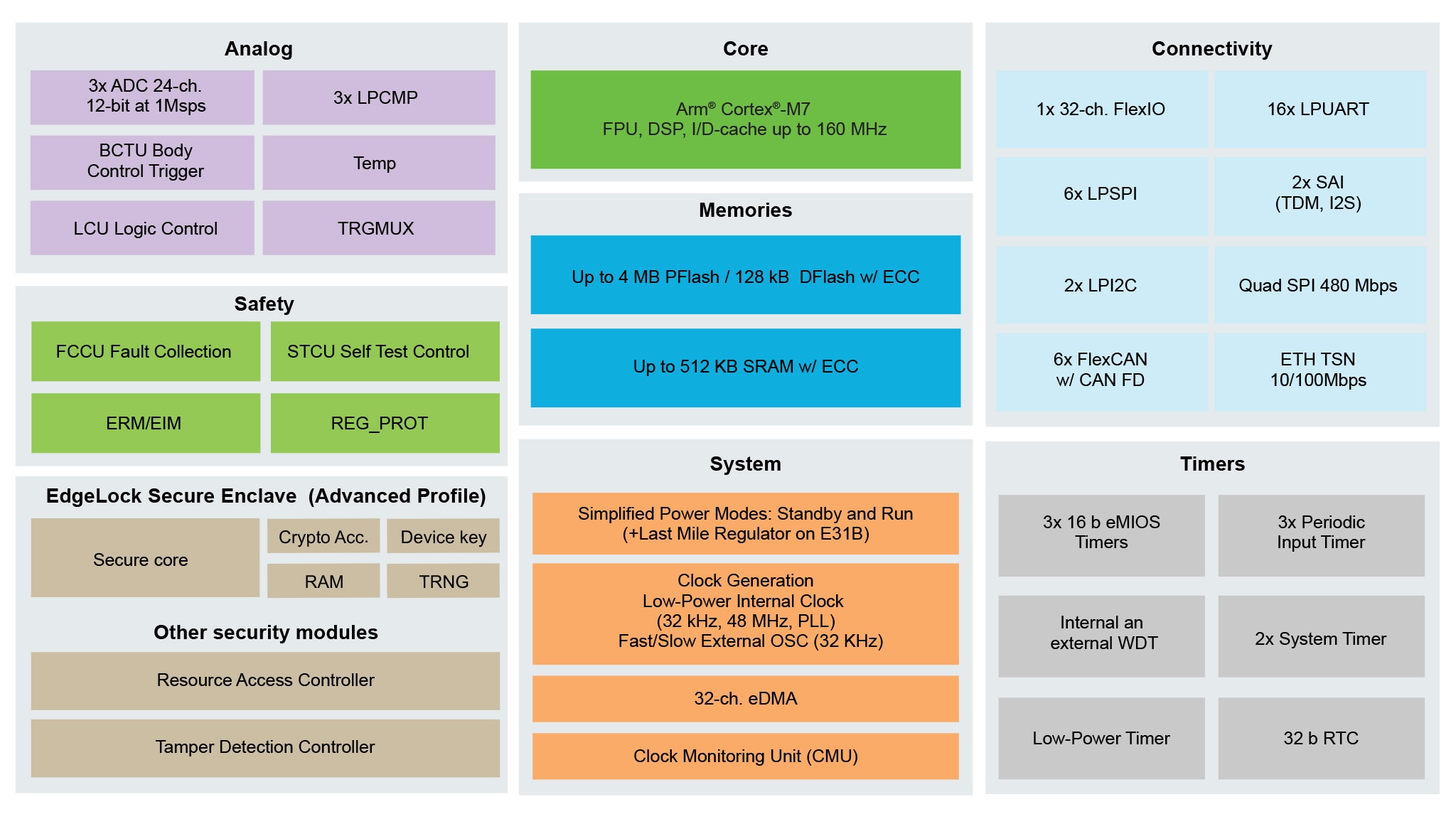 要約すると、MCX E31ファミリには次のような独自の機能が組み合わされています。