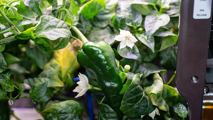 last two missions to grow lettuce. Right now, we’re growing Hatch chili