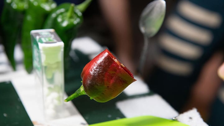 The crew on the ISS tasting their harvested Hatch chili peppers