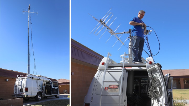 NXP engineer Lionel Mongin setting up the amateur radio ground station