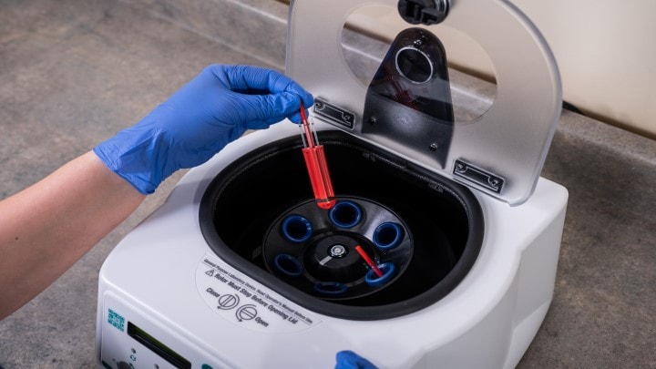 遠心分離機の動作原理は簡単明瞭です。遠心分離機内の専用スロットにサンプルを挿入します。このスロットは一般に標準的なサンプル収集チューブに合わせて設計されています。このサンプルを制御された速度で一定時間回転させます。この回転処理により、サンプルの成分が密度に応じて、回転で生じる力によって物理的に分離されます。たとえば、血漿や血清を赤血球、白血球、血小板などの他の血液成分から分離することができます。