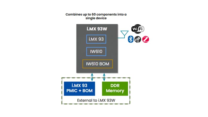 One way the i.MX 93W processor delivers this advantage is by consolidating wireless components to massively reduce the BOM. With fewer components to source, organizations are less vulnerable to supply chain fluctuations and can spend less time and effort managing inventory and suppliers.