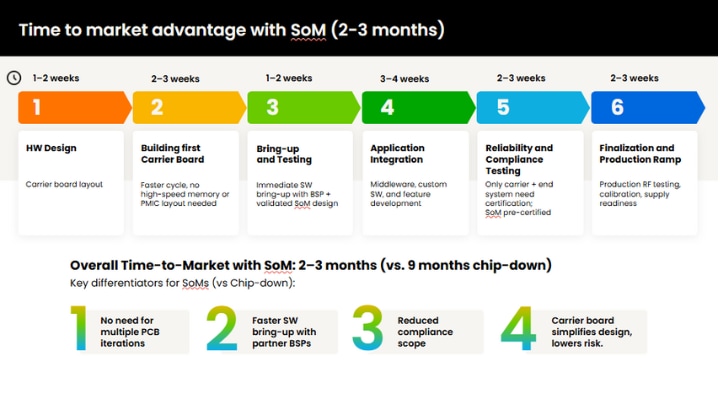 市場のトレンドだけにとどまらず、SoMは、チームがより迅速かつスマートにイノベーションを実現するために役立つ具体的な利点を提供します。SoMによって開発プロセスがどのように変革されるのかについて次に示します。