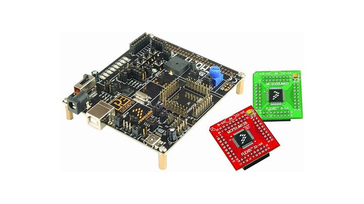 The Flexis® DEMOJM is a cost-effective demonstration board enabling quick MCU evaluation and includes a DEMOJM base board, a red MCF51JM128 daughter card and a green MC9S08JM60 daughter card.