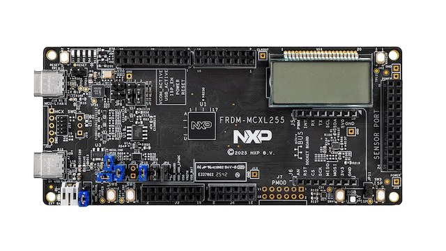 FRDM‑MCXL255 boards are compact and scalable development platforms for rapid prototyping with the MCXL255/254/253 microcontroller units (MCUs). They support a wide operating voltage range from 1.8 V to 3.3 V, enabling flexible use across various applications. The boards provide industry‑standard headers for easy access to MCU I/Os, integrated open‑standard serial interfaces, external flash memory, and an on‑board MCU‑Link debugger.