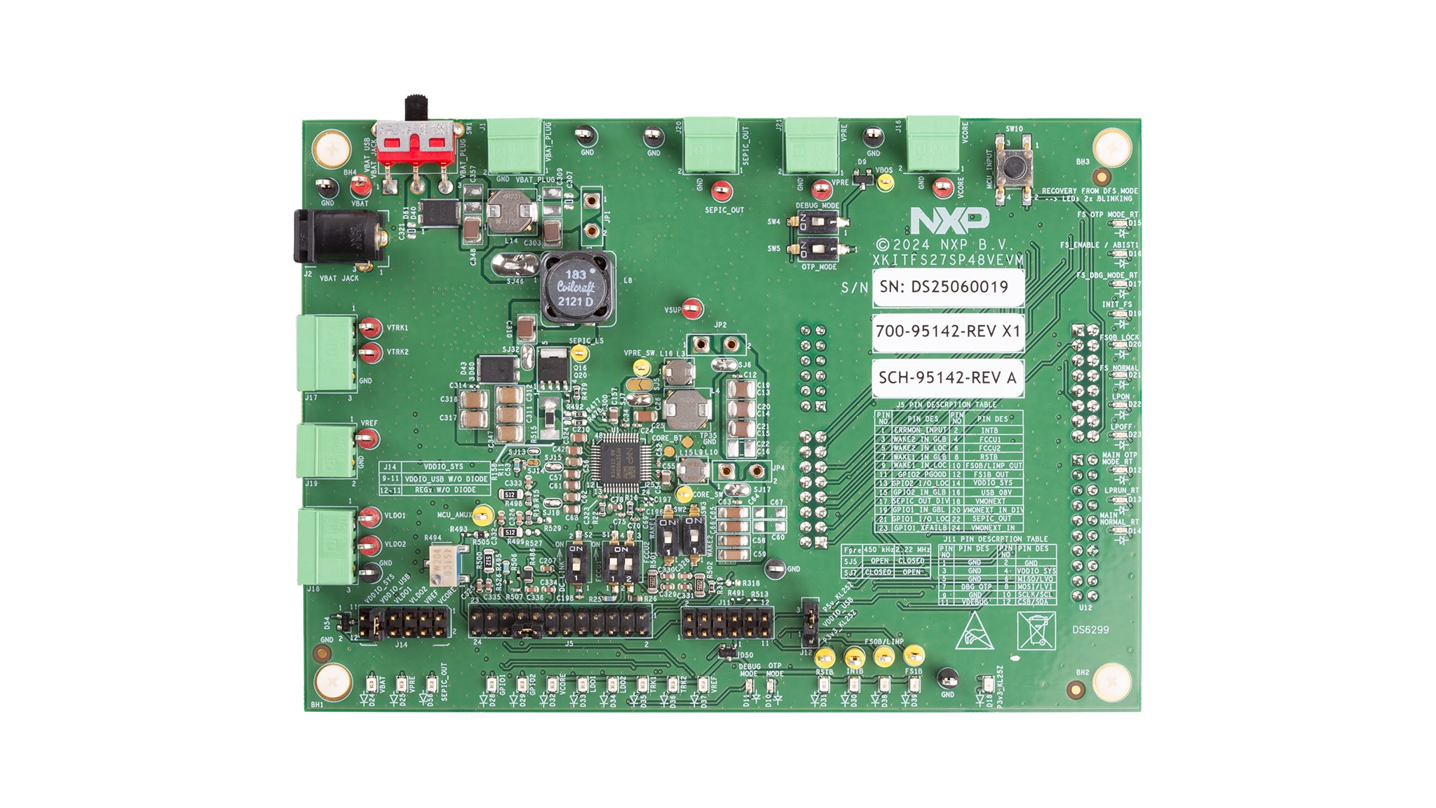 KITFS27-SP48VEVMは、お客様でFS2700デバイス・ファミリを簡単に構成できます。この評価キットは、メイン領域とセーフティ領域の両方でデバイスのすべての機能を利用するための柔軟性を提供します。すべてのレギュレータにコネクタを介してアクセス可能です。DC/DCスイッチャ・ノードなどの非ユーザー信号は、テスト・ポイントにマッピングされています。対象となるのは48 V車載アプリケーションです。