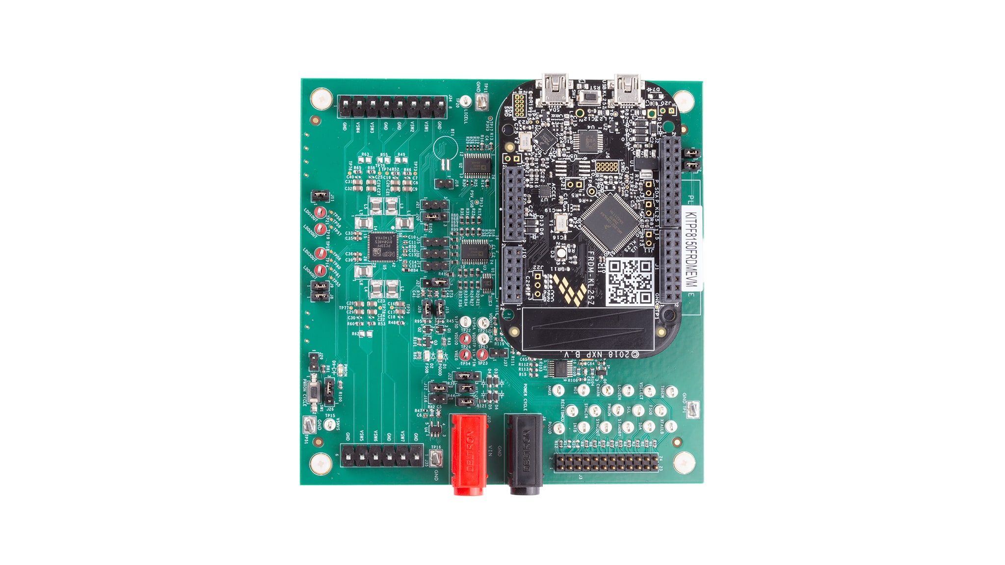 - Assembled and tested evaluation board and preprogrammed FRDM-KL25Z microcontroller board in an antistatic bag