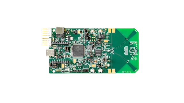 The Localization Reference Design with KW47 is an evaluation kit for demonstrating Bluetooth® Channel Sounding for both automotive and IoT applications. This design consists of two chip antennas and an RF switch supporting antenna diversity, an integrated programmer/debugger and a mikroBUS™ header to easily add expansion boards. This board provides the most suitable development and evaluation platform for the Bluetooth LE Channel Sounding feature, as it supports Antenna Switching by default.
