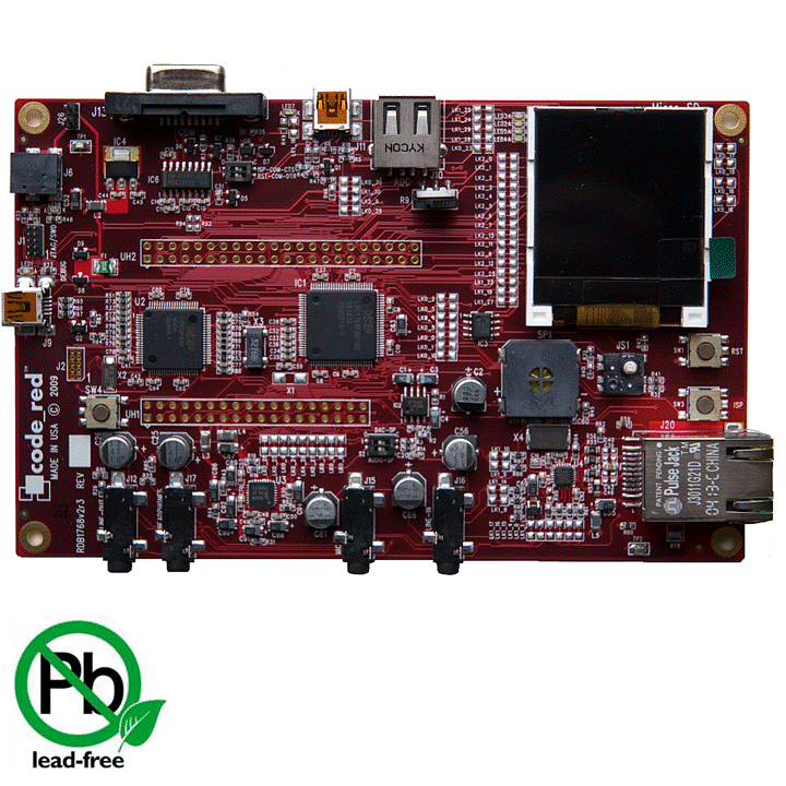 The Code Red LPC1768 Evaluation Board allows you to quickly and easily evaluate the LPC176x family of microcontrollers. The microcontroller, board, and accompanying features make it a great starting point for your next Cortex-M3 project.