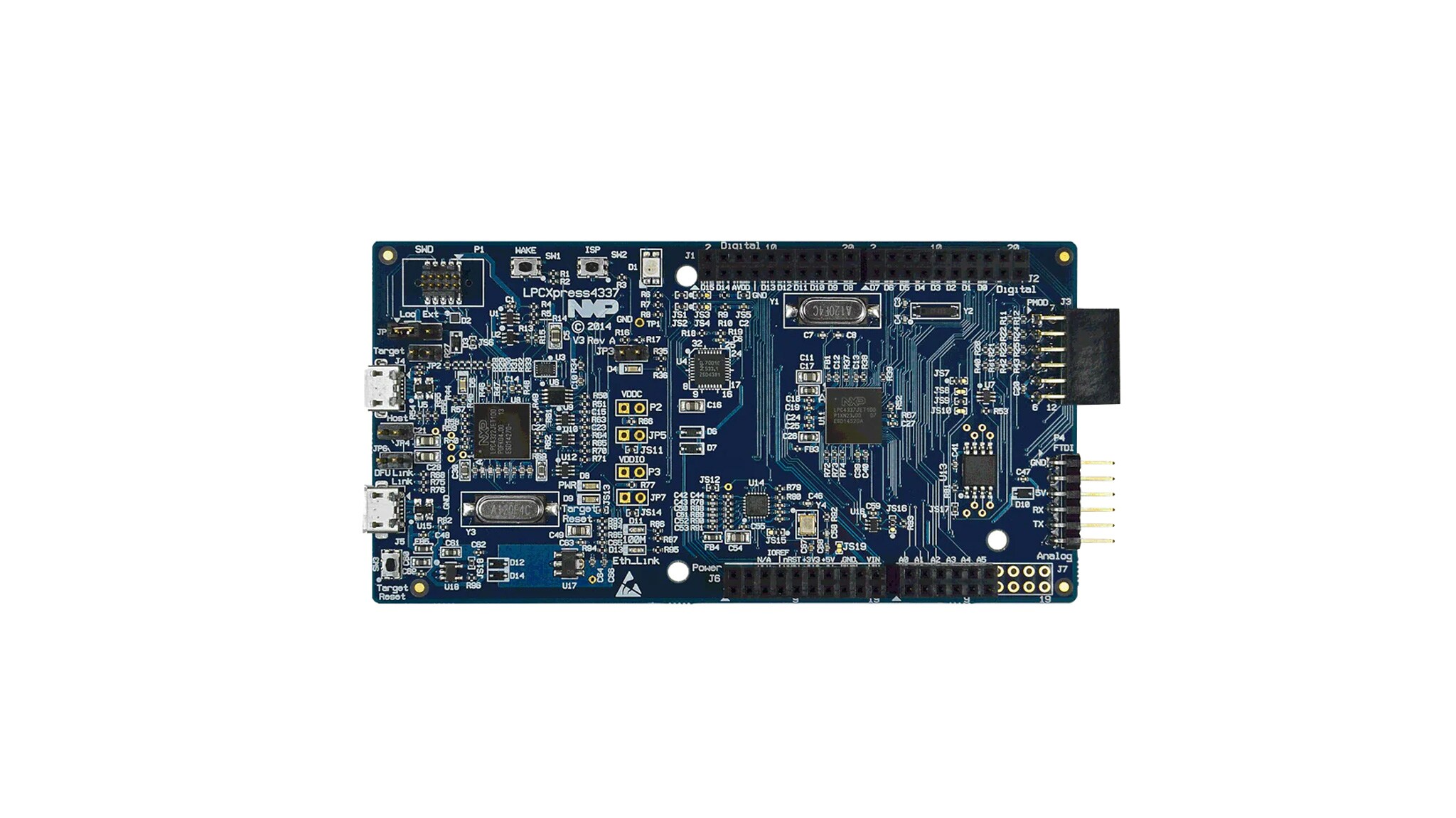 This board has been replaced by the LPCXpresso4367 (OM13088), which is software backwards compatible and offers more features. Note that LPC4337 devices are still in full production.