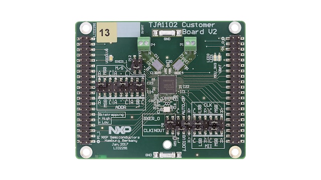 The TJA1102 customer evaluation board is a low-cost hardware development tool which supports the functional evaluation of the TJA1102 (dual port) and the TJA1102S (single port) 100BASE-T1 PHY transceiver.