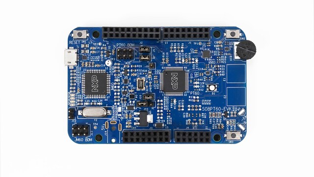The S08PT60-EVK is cost-effective development hardware for the NXP S08P 5V 8-bit MCUs.