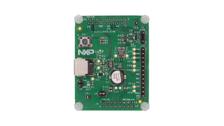 The UJA1162A-EVB evaluation board is a supportive tool to develop system solutions using the UJA1162A Self-Supplied CAN Transceiver. The board is pin compatible with the Arduino Uno pinout order and can be used in combination with any microcontroller board providing USB-to-SPI interfacing.