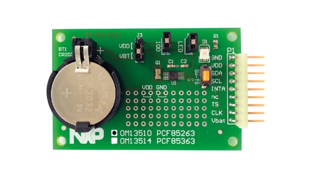 The OM13510 is the ideal evaluation and demo board of the PCF85263A. It can be used in the design phase of any project. Just the supplies and the bus must be connected.