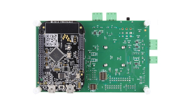 - FRDM-KL25Zに接続された、組み立ておよびテスト済みのKITPF5030SKTEVM(帯電防止袋入り)