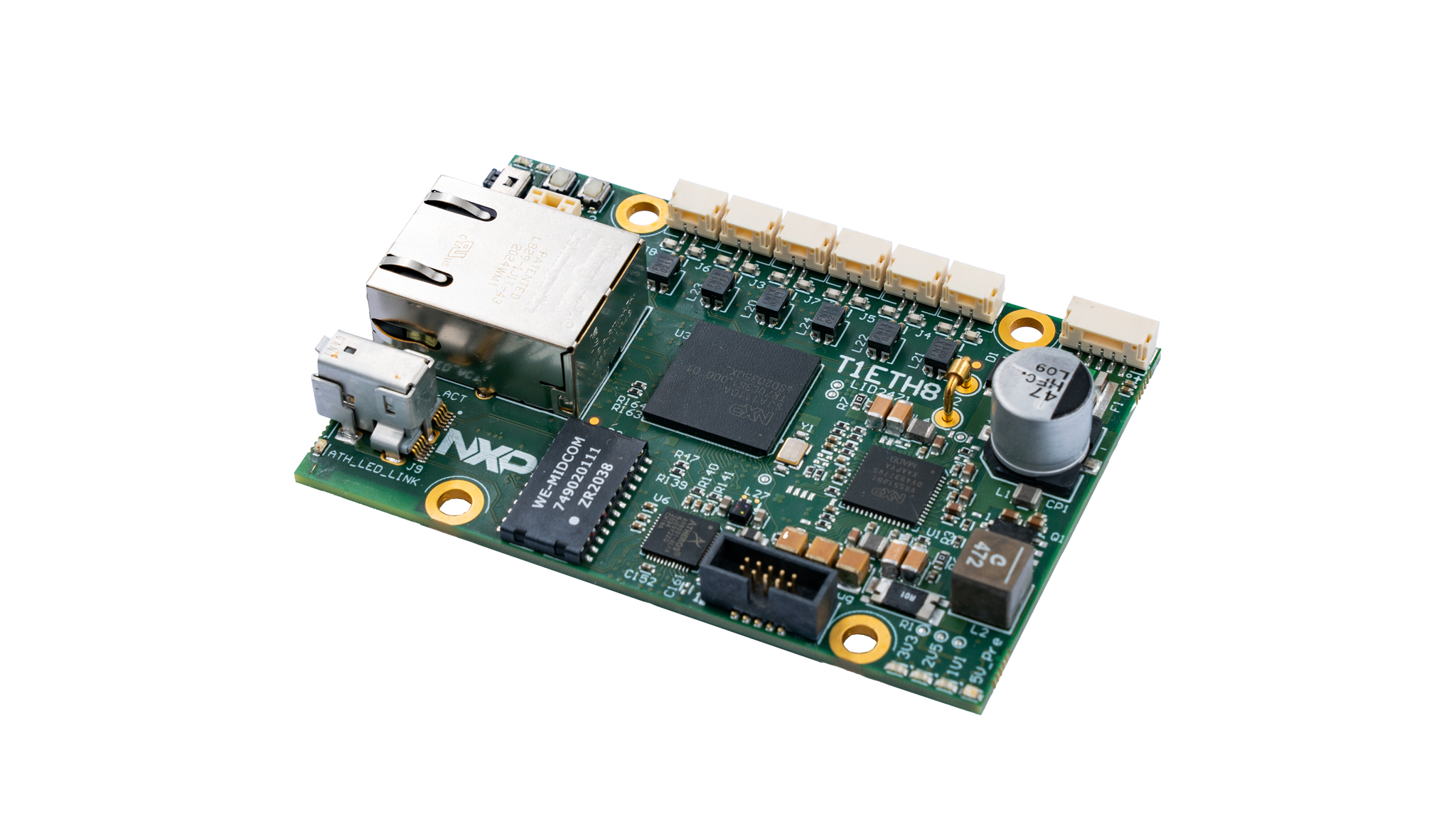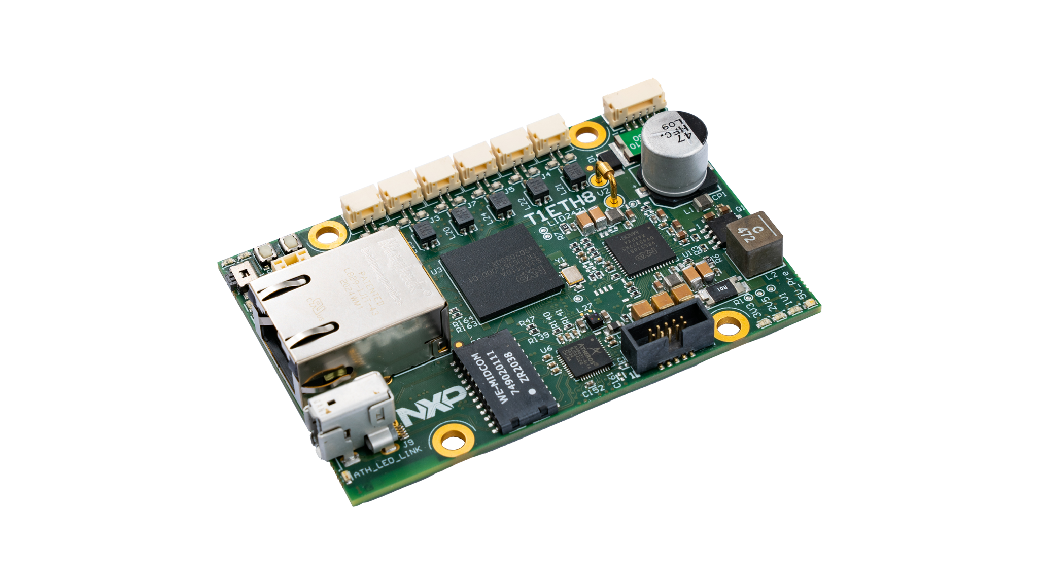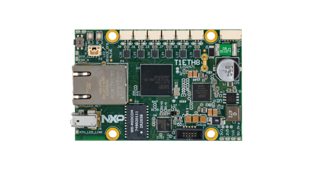 The MR-T1ETH8 is a development board based on the SJA1110 Multi-Gig Safe and Secure TSN Ethernet switch with Integrated 100BASE-T1 PHYs. It is designed to target automotive and mobile robotics applications. The board implements the SJA1110A Ethernet switch and is compatible with the the SJA1110 SDK and AVB/gPTP middleware.