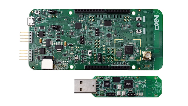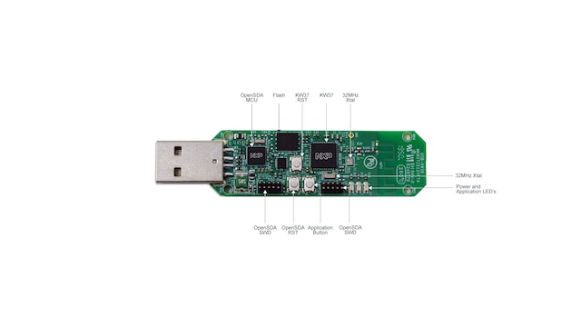 The USB-KW38 is a development platform enabled by the KW39/38/37 family built on the Arm® Cortex®-M0+ processor in a convenient USB dongle form factor. The USB-KW38 can be used as a Bluetooth® Smart/Bluetooth® Low Energy development board such as the FRDM-KW38. The USB Dongle used as a wireless packet sniffer can monitor over-the-air communications.