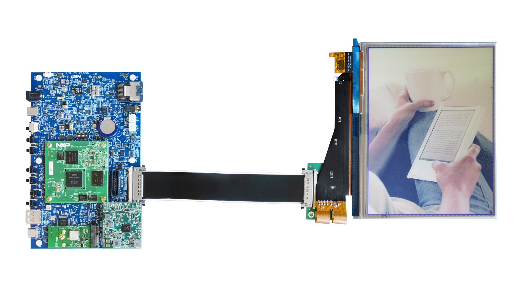 The NXP Color eReader reference design demonstrates how to use the i.MX 8ULP built-in EPDC (Electrophoretic Display Controller) to drive the E Ink® Gallery™ 3 and Kaleido™ 3 color e-paper. Since an external TCON (Timing Controller) is not required, the cost and power consumption are significantly reduced.