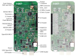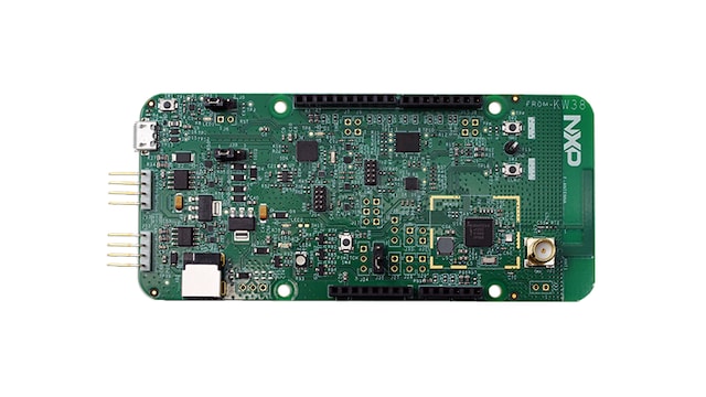 FRDM development board for KW39/38/37 MCUs with 2.4 GHz Bluetooth® LE and generic FSK wireless connectivity and CAN/LIN connectivity solutions The FRDM-KW38 kit contains FRDM board that can be used as a development board or a shield to connect to a host processor. The FRDM-KW38 highly sensitive, optimized 2.4 GHz radio features a PCB F-antenna which can be bypassed to test via SMA connection, CAN and LIN transceivers, 4-Mbit external serial flash, multiple power supply options, push/capacitive touch buttons, switches, LEDs and integrated sensors.