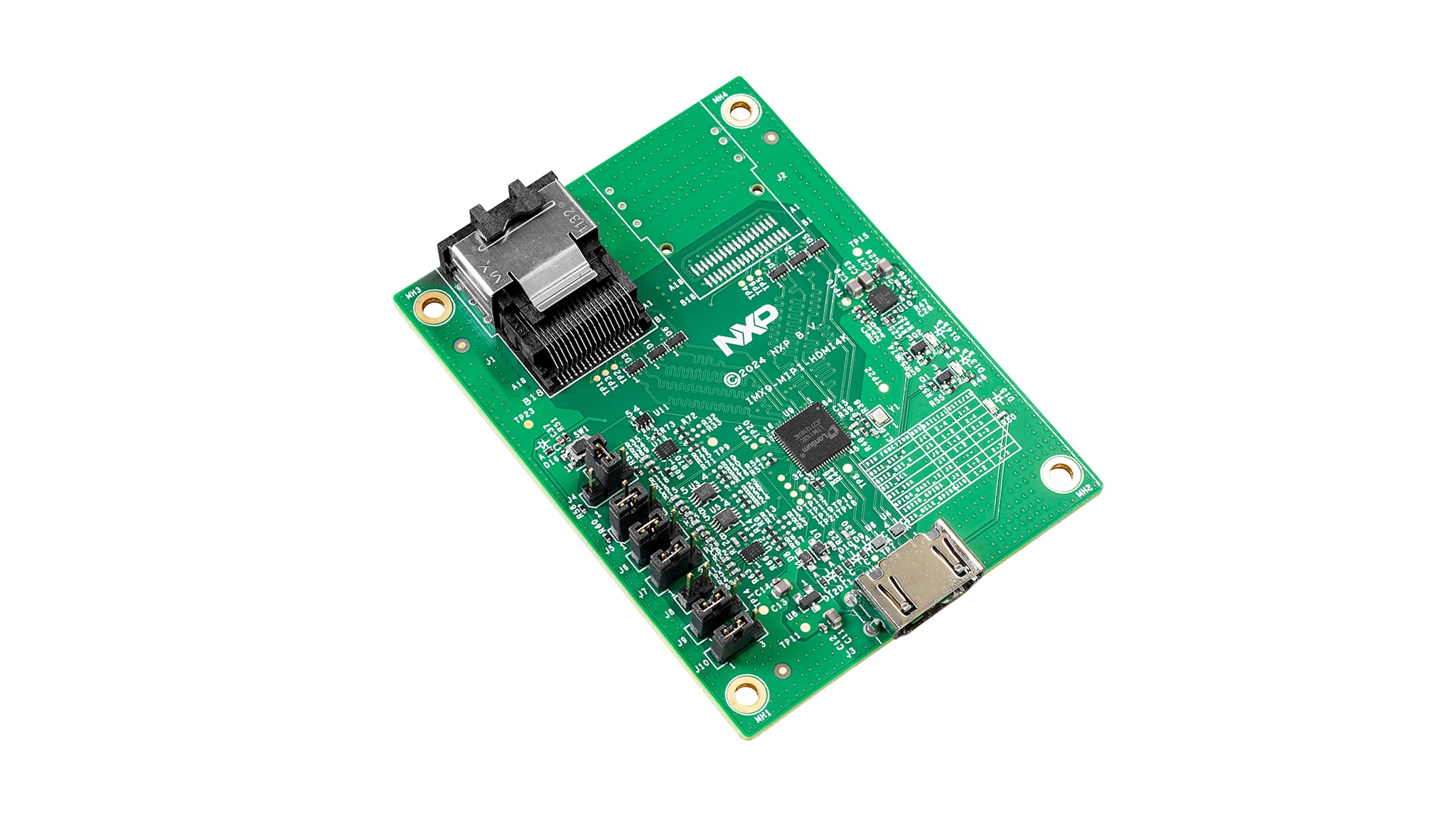The IMX9-MIPI-HDMI4K is a MIPI-DSI to HDMI adaptor card to be used with the i.MX 95 applications processor. This accessory supports 4KP30 with 1x DSI port or 4KP60 with 2x DSI interfaces with mini-SAS connector on the board.