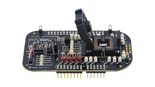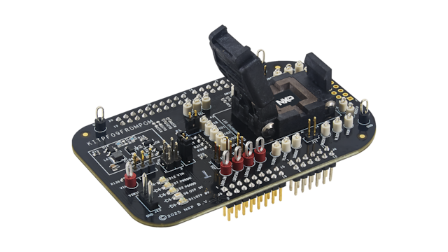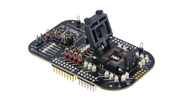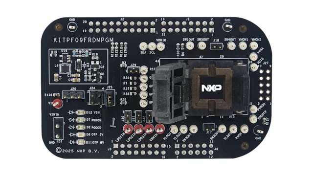 The KITPF09FRDMPGM is a customer programing board featuring the PF09, a Nine-channel power management IC with advanced system safety monitoring. The kits integrate all hardware needed to configure completely the featured power management integrated circuit. It integrates a communication bridge based on the FRDM-KL25Z development board to interface with the GUI software interface to fully configure and control the PF09 PMIC. This board is only intended for configuring the device.