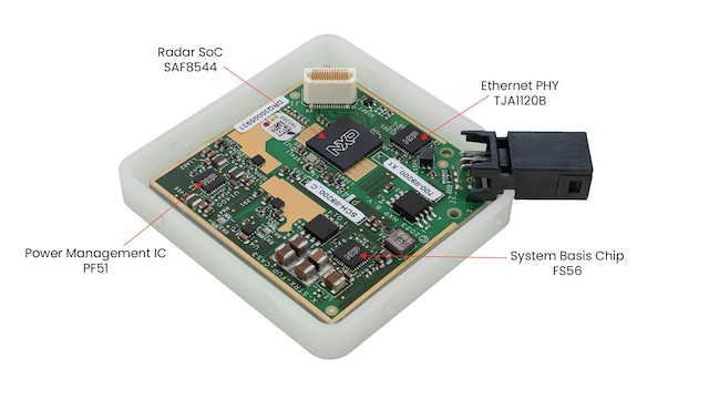 Plutoレーダー・リファレンス・デザインを使用して、コーナー・レーダーやフロント・レーダーのアプリケーションを評価できます。このリファレンス・デザインは、SAF8544レーダー・ワンチップSoC、TJA1120B 1000Base-T1イーサネット・トランシーバ、および最適化されたシステム・ベーシス・チップFS56とパワー・マネジメントIC PF51を、小さなセンサ・フォーム・ファクタに組み込んでいます。非常に小さなフットプリントで、4個のトランスミッタと4個のレシーバがパッチ・アンテナと組み合わされています。このリファレンス・デザインは、市場投入までの時間を短縮し、検証済みのシステム・ソリューションを提供します。