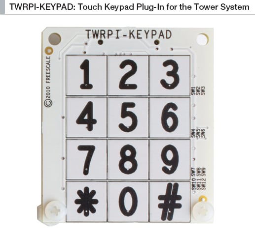 The TWRPI-KEYPAD capacitive touch keypad plug-in for the NXP® Tower® System lets you add keypad functionality to your embedded designs. This plug-in, or daughter card, is compatible with Tower System modules that feature touch pad Tower plug-in sockets. Simply place the TWRPI-KEYPAD onto a parent controller or peripheral module, and start prototyping quickly and easily. It's that simple and, quite literally, at your fingertips.