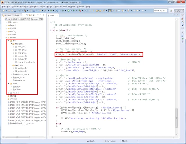 Included embedded driver provides access to all features of H-Bridge such as device active mode management. It also implements DC brushed and stepper motor control algorithms.