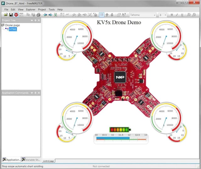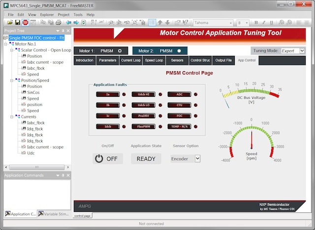 FreeMASTERではカスタムHTML、MATLAB®、Excelや他のスクリプト可能なフレームワークとリンクし、MCUハードウェアを制御ループに組み込めます。FreeMASTERを実行するホストは、多様な通信ペリフェラルやデバッグ・チャネル経由でターゲット・システムに直接接続できます。FreeMASTERではグラフ、表形式のグリッド、ウェブ・ビューをデスクトップ・アプリケーションに直接組み込めます。FreeMASTERの接続はJSON RPC呼び出しによるネットワーク接続で行い、Python、Node.js、C/C++/C#などの言語でのクライアント実装に対応しています。このオプションは既存のChromiumブラウザ・コンポーネントと完全な互換性があり、Internet Explorerテクノロジ・ベースのレガシー・ソリューションとも優れた互換性を備えています。詳細については、FreeMASTER 3.2インストールに付属するIE移行ガイド・ホワイトペーパーを参照してください。