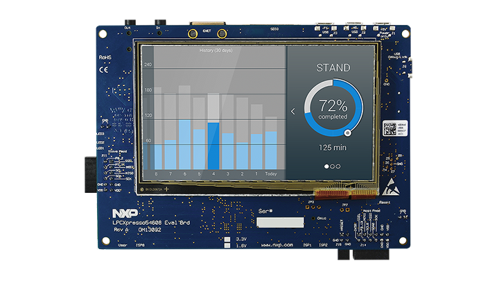 The LPCXpresso54608 board includes an extensive set of connectors and on-board peripherals to enable full evaluation of the target MCU and development of highly functional prototypes. The on-board peripherals are complemented by a set of drivers and examples in the MCUXpresso SDK.