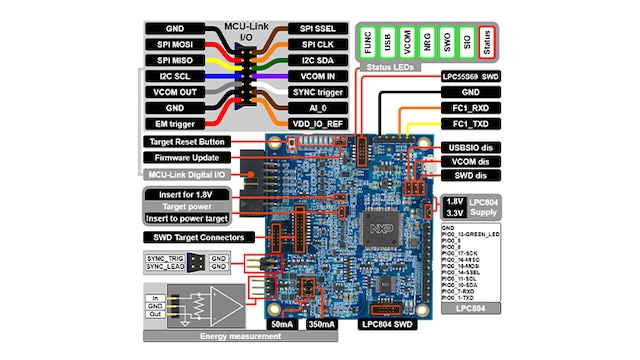 • LPC55S69 dual Arm Cortex M33 MCU running at 150MHz