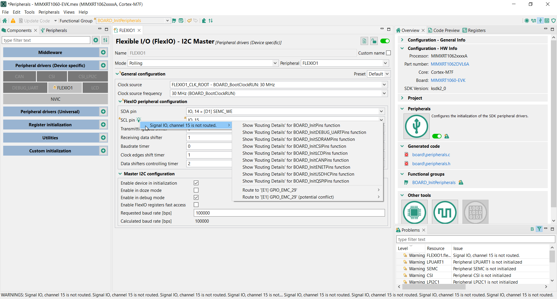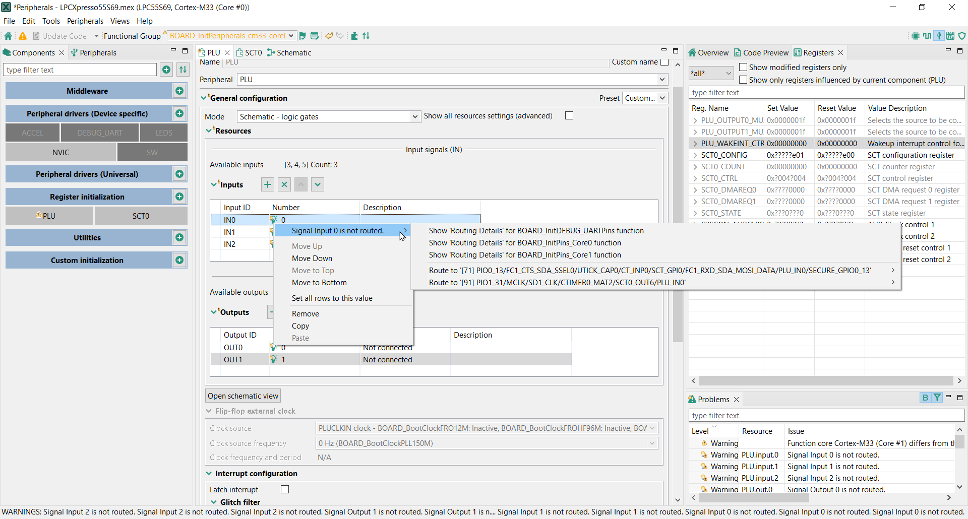Component in the peripherals tool from the MCUXpresso configuration tools