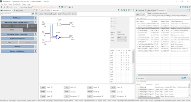 Peripheral configuration tools, along with PWM driver examples. Examples