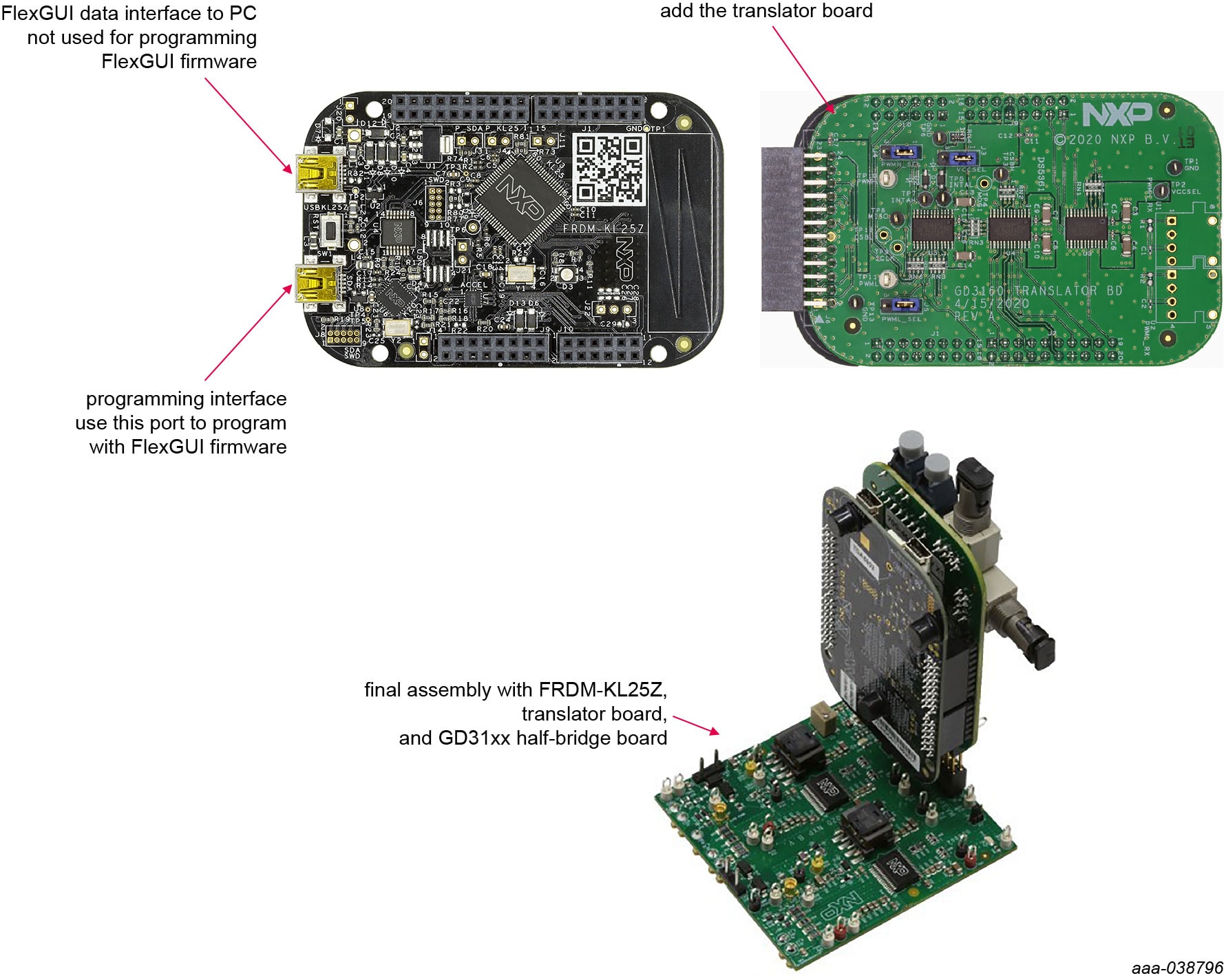 Software for FRDMGD31RPEVM is distributed with the FlexGUI tool (available on NXP.com). Necessary firmware comes preinstalled on the FRDM-KL25Z with the kit.