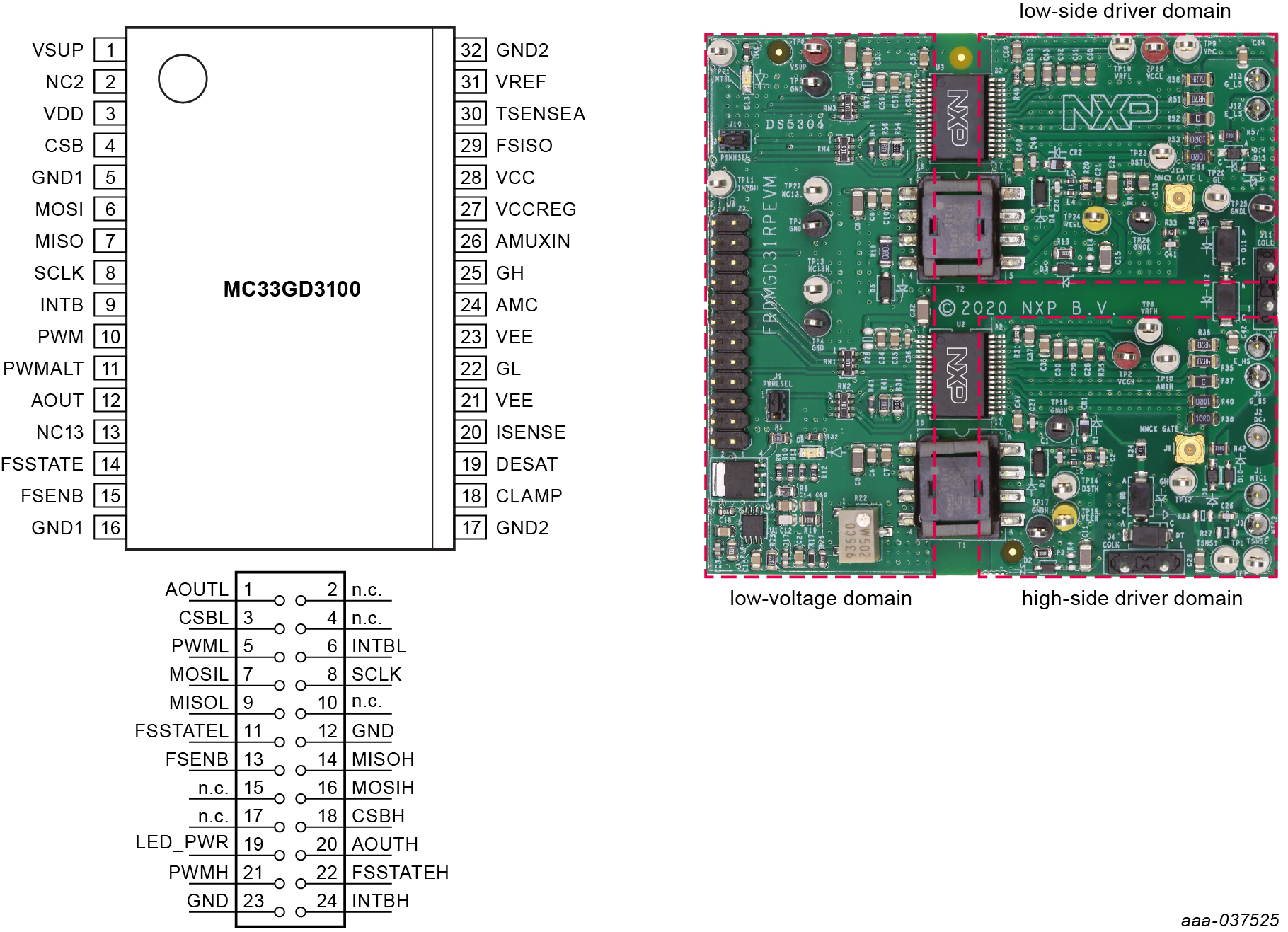 Overview of the FRDMGD31RPEVM half-bridge evaluation board.