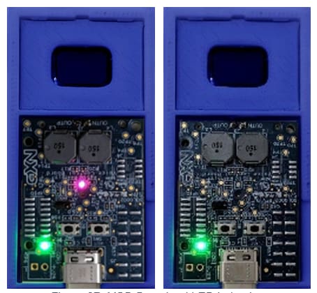 When you power on the kit for the first time, you will see the Status Indicator LED cycling through various color patterns. These are status indicators for the various stages of the boot process as the chip cycles from internal ROM, to bootstrap, to bootloader, to running the application.