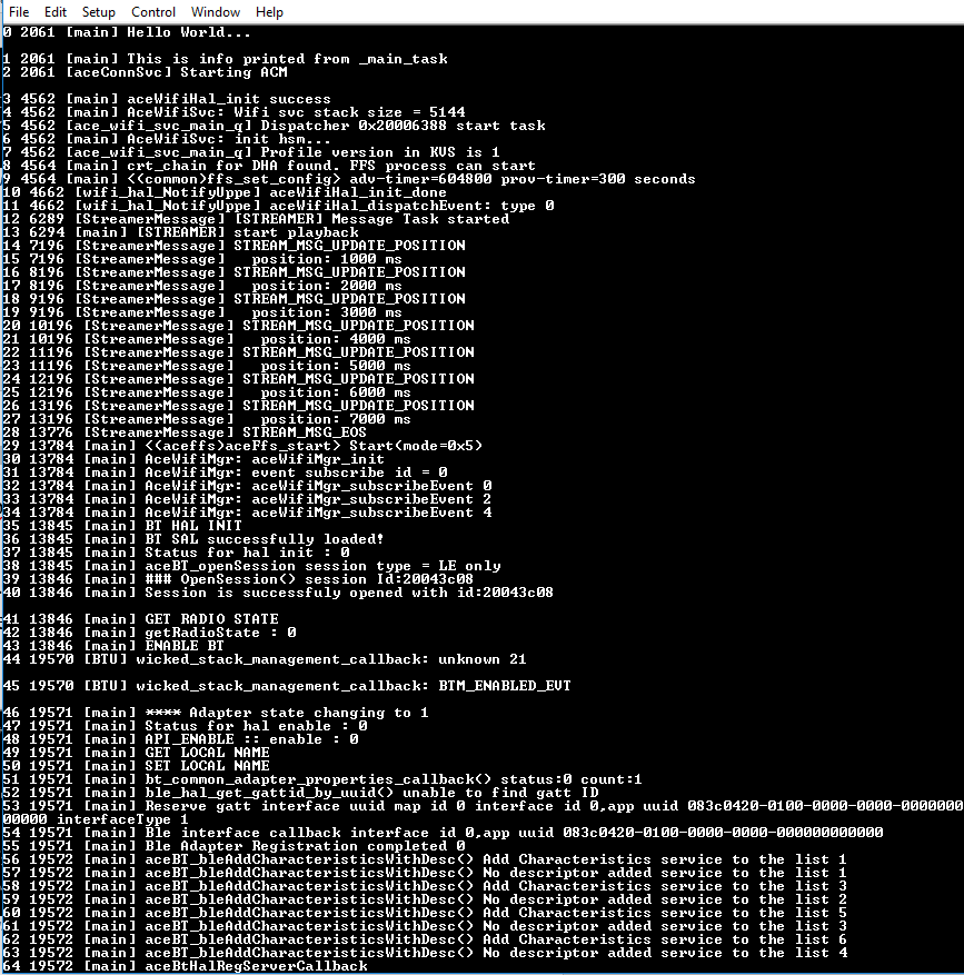 To obtain the logs of the SLN-ALEXA-IOT kit, type “logs” in the serial console.