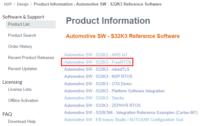 [Automotive SW(車載SW)]→[S32K3 Reference Software(S32K3リファレンス・ソフトウェア)]→[Automotive SW(車載SW)]→[S32K3]→[FreeRTOS]→[SW32K3_FreeRTOS_10.4.6_2.0.1_D2209]→ SW32K3_FreeRTOS_10_4_6_UOS_2_0_1_DS_updatesite_D2209.zip。