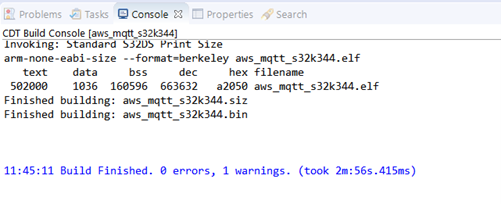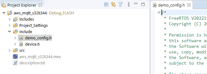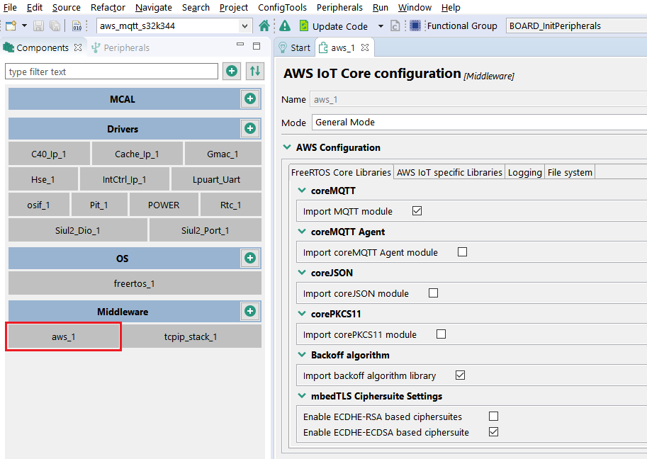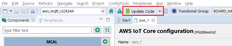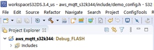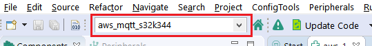 ウィンドウの左上で現在のプロジェクトとして (aws_mqtt_s32k344) を選択します。