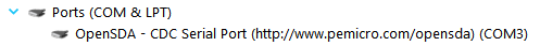 OpenSDAインターフェースに関連付けられた仮想COMにシリアル・ターミナルを接続すると、実行の進捗状況を確認できます(デバイス・マネージャで確認可能)。