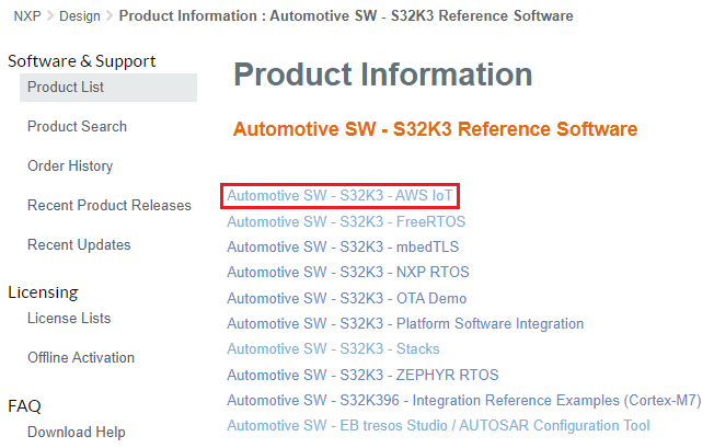 [Automotive SW(車載SW)]→[S32K3 Reference Software(S32K3リファレンス・ソフトウェア)]→[Automotive SW(車載SW)]→[S32K3]→[AWS IoT]→[S32K3 AWS IoT Core Version 1.0.0(S32K3 AWS IoT Coreバージョン1.0.0)]→ SW32K3_AWS_IOT_CORE_1.0.0_D2304_updatesite.zip