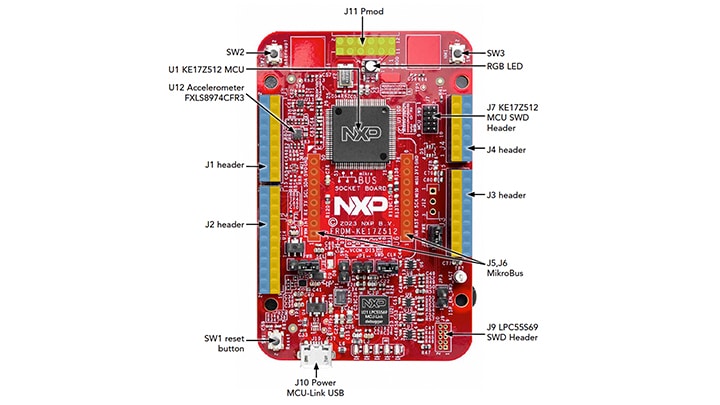 FRDM開発ボードは、標準のフォーム・ファクタとヘッダ、MCU I/Oへの簡単なアクセス、オンボードMCU-Linkデバッガ、USB micro Bケーブルを備えています。フル機能の評価キットには、I/Oおよびインターフェースへの拡張アクセス、Wi-Fi拡張機能のほか、追加のMCU-Link機能が含まれます。互換性のあるClickボードやArduinoシールドも多数あります。Open CMSIS Packでサポートされるものについては、ACHでサンプルが提供されている場合がありますが、そうでない場合でも、その多くがI2C、SPI、UARTなどのシリアル・インターフェースを利用して容易に使用でき、MCUXpresso SDKでドライバとサンプルが提供されています。