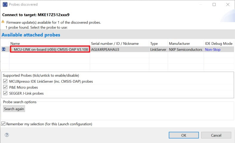 SDK_2_14_1_FRDM-KE17Z5127を選択します 「gxx-arm-non-eabi-10.3」オプションを選択します