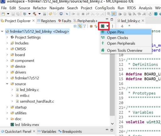 MCUXpresso Config Toolsは、ユーザーがMCUXpresso SDKプロジェクトを作成するための構成ツールの統合スイートであり、カスタム・ボード・サポート用の初期化Cコードを生成するためのピンとクロックのツールも備えています。MCUXpresso IDEの一部として完全に統合されており、別のIDEを使用する場合は独立したツールとしても使用できます。