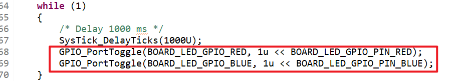 led_blinky.cファイルを開き、青色LEDを初期化する次のマクロを追加します